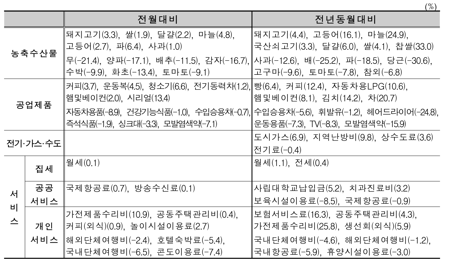 나. 공업제품: 기름값과 가공식품의 쌍끌이 인상