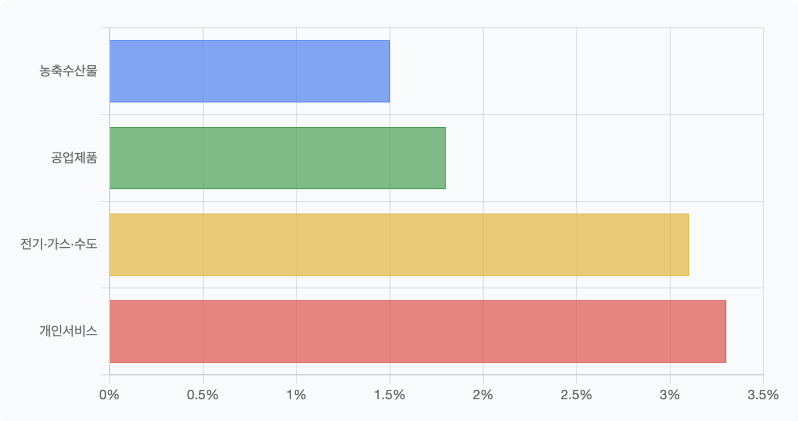 개인 서비스 물가가 3.3%나 올랐다는 것은 동네 식당, 미용실, 학원 등을 운영하는 소상공인들 역시 인건비와 재료비 상승으로 어려운 상황임을 보여줍니다.