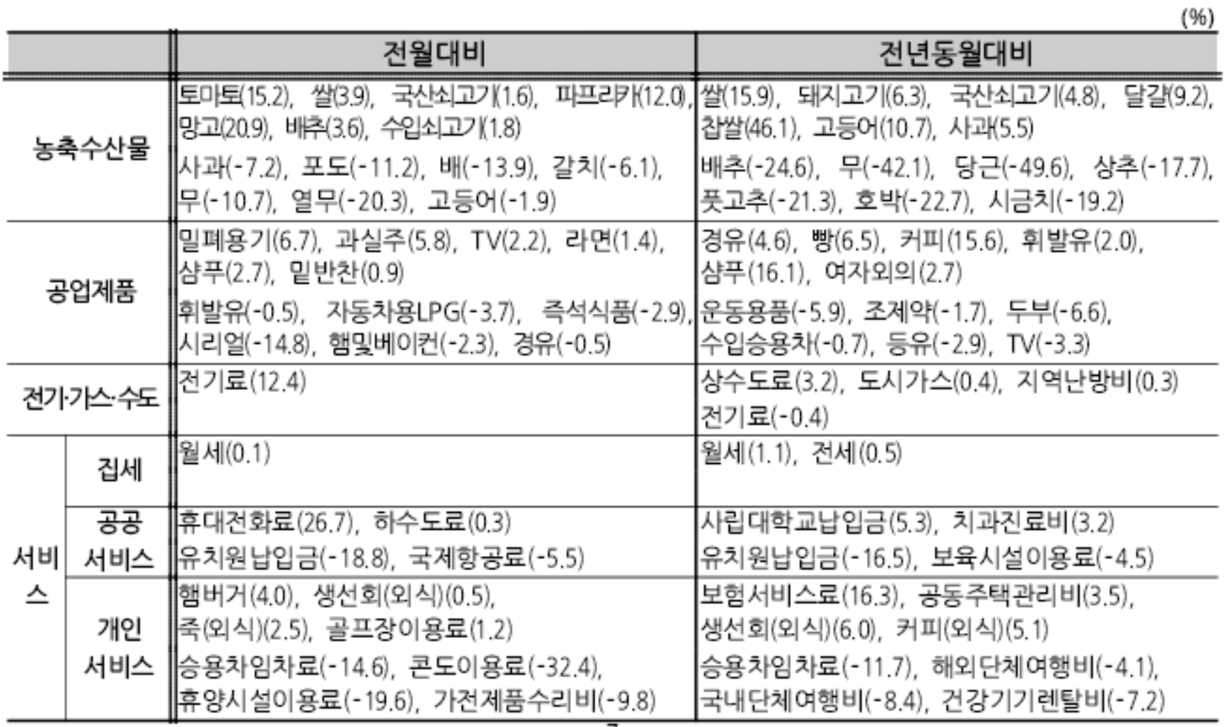 8월에 폭등했던 농축수산물 가격은 다행히 1.9% 상승에 그치며 8월(4.8%)보다 오름세가 크게 둔화되었습니다.